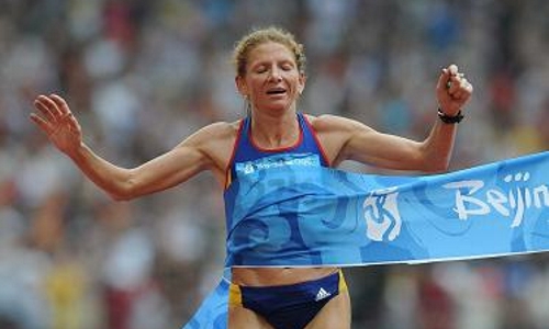 The Women's marathon took place on August 17, 2008 around an urban circuit specifically designed for the competition, and finished in the Beijing National Stadium. The qualifying standards were 2:37.00 (A standard) and 2:42.00 (B standard). The winner was Constantina Dita-Tomescu of Romania who at one point took a lead of over a minute and maintained it ahead of the chasing pack all the way into the stadium. She completed the marathon in a time of 2:26:44. At 38 years of age, she became the oldest Olympic marathon champion in history (previously the oldest man to win an Olympic marathon was age 37 and the oldest woman was age 30). In second place was Catherine Ndereba of Kenya who completed the race in 2:27:06, closely followed by bronze medalist, Zhou Chunxiu of China who finished in a time of 2:27:07. World record holder Paula Radcliffe of Great Britain took part in the race despite injury problems that bothered her throughout the previous year. However, she did not feature for much of the race and had to pause and do some exercises to rid herself of cramp at one point. She then proceeded to finish the marathon in twenty-third place in a time of 2:32:38.